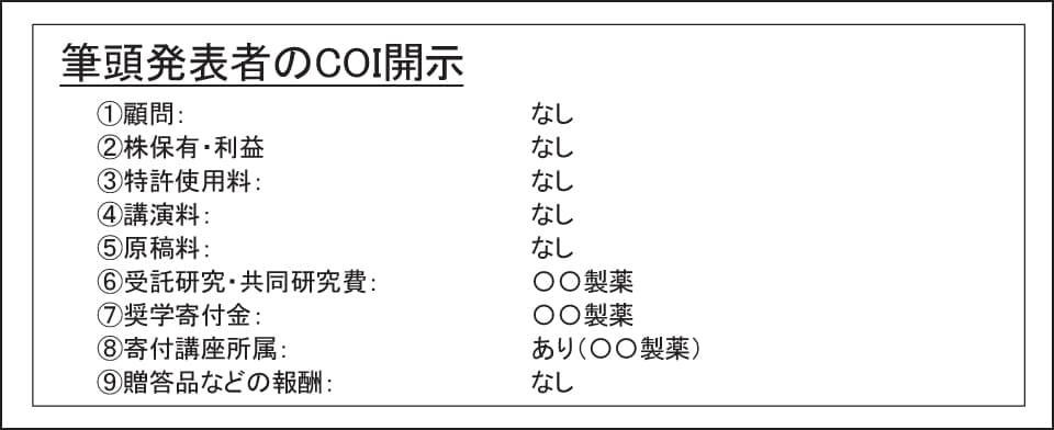 産学連携による臨床研究の適切な推進を図り、科学性・倫理性を担保に遂行された臨床研究成果の発表における中立性および透明性を確保するため、すべての発表者に「利益相反(Conflict of Interest,COI)」の開示を求めることといたします。詳細については以下を参照ください。